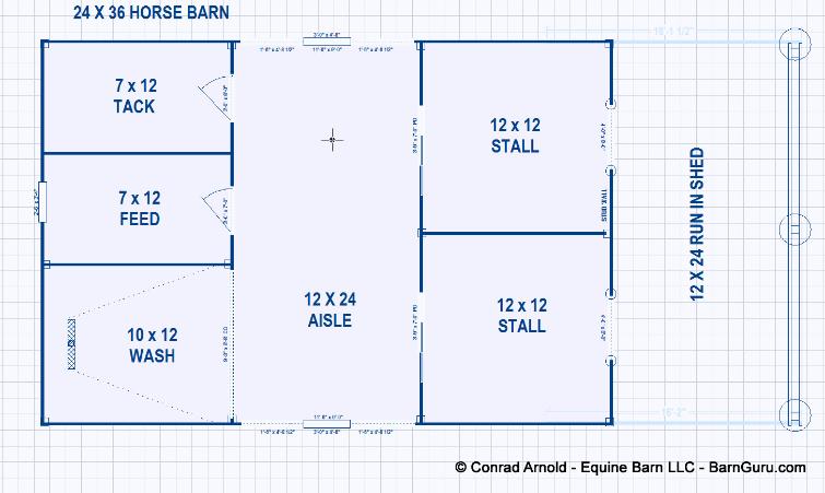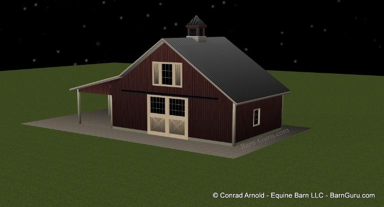 | Buy The Basic Plans. Floor Plan, Footing layout, Footing Details and Elevations for $350.00. If you are planning to build the barn yourself or if your builder is unfamiliar with horse barn construction you may need framing details and a materials list . Most experienced builders would only need the above floor plan and elevations and could give you several framing option. Our framing details would be the way we would frame the barn using 6" x 6" post with double rafters that sandwich post 12' o.c., with 4" x 6" purlins 24" o.c., or you can choose typical roof framing with rafters 16" o.c. Either framing techniques will show detailed site built king trusses 12' o.c. You can always order the framing details and a material list later if you need them. Add $350.00 for framing details if you need them. Add $350.00 if you need a material list with Georgia material pricing. Add $200.00 to Modify the plan |