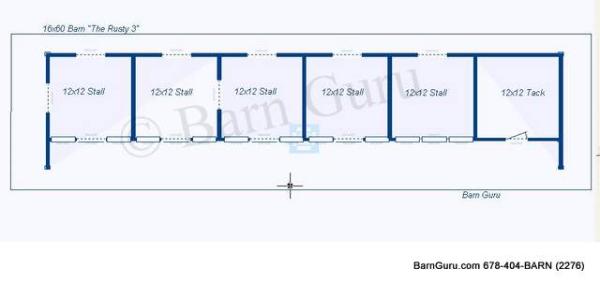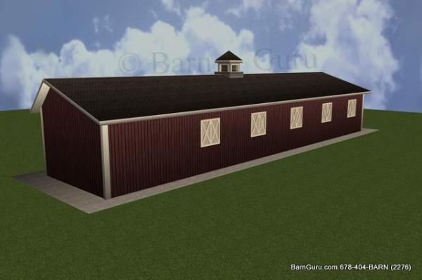 | Buy The Floor Plan, Footing layout, Footing Details and Elevations for $200.00. If you are planning to build the barn yourself or if your builder is unfamiliar with horse barn construction you may need framing details and a materials list . Most experienced builders would only need the above floor plan and elevations and could give you several framing option. Our framing details would be the way we would frame the barn using 6" x 6" post with double rafters that sandwich post 12' o.c. with 5" x 5" purlins 32" o.c. or you can choose typical roof framing with rafters 16" o.c. Either framing techniques will show detailed site built king trusses 12' o.c. You can always order the framing details and a material list later if you need them. Add $200.00 for framing details if you need them. Add $200.00 if you need a material list with Georgia material pricing. Add $100.00 to Modify the plan |