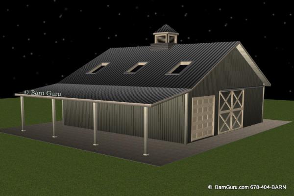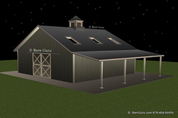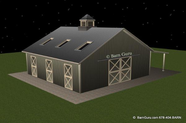 | Buy The Floor Plan, Footing layout, Footing Details and Elevations for $200.00. If you are planning to build the barn yourself or if your builder is unfamiliar with horse barn construction you may need framing details and a materials list . Most experienced builders would only need the above floor plan and elevations and could give you several framing option. Our framing details would be the way we would frame the barn using 6" x 6" post with double rafters that sandwich post 12' o.c. with 5" x 5" purlins 32" o.c. or you can choose typical roof framing with rafters 16" o.c. Either framing techniques will show detailed site built king trusses 12' o.c. You can always order the framing details and a material list later if you need them. Add $200.00 for framing details if you need them. Add $150.00 if you need a material list with Georgia material pricing. Add $100.00 to Modify the plan |